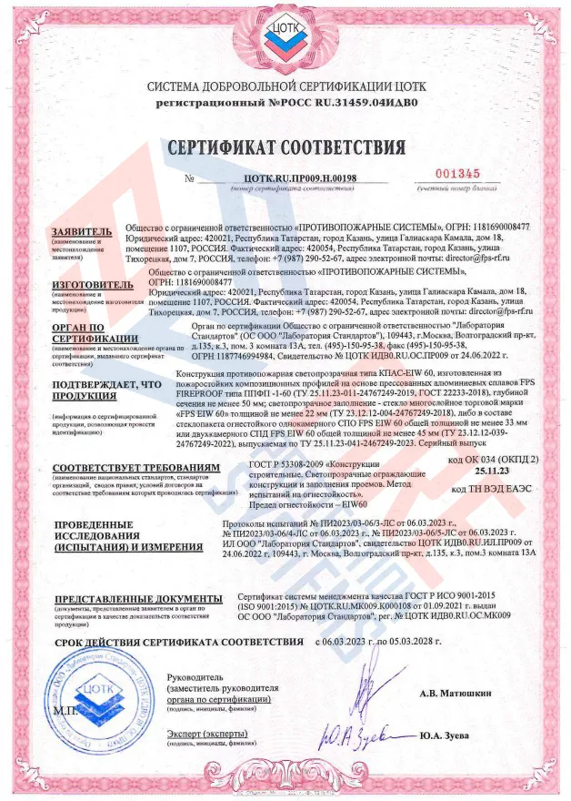 Противопожарные светопрозрачные перегородки отличаются следующими свойствами: